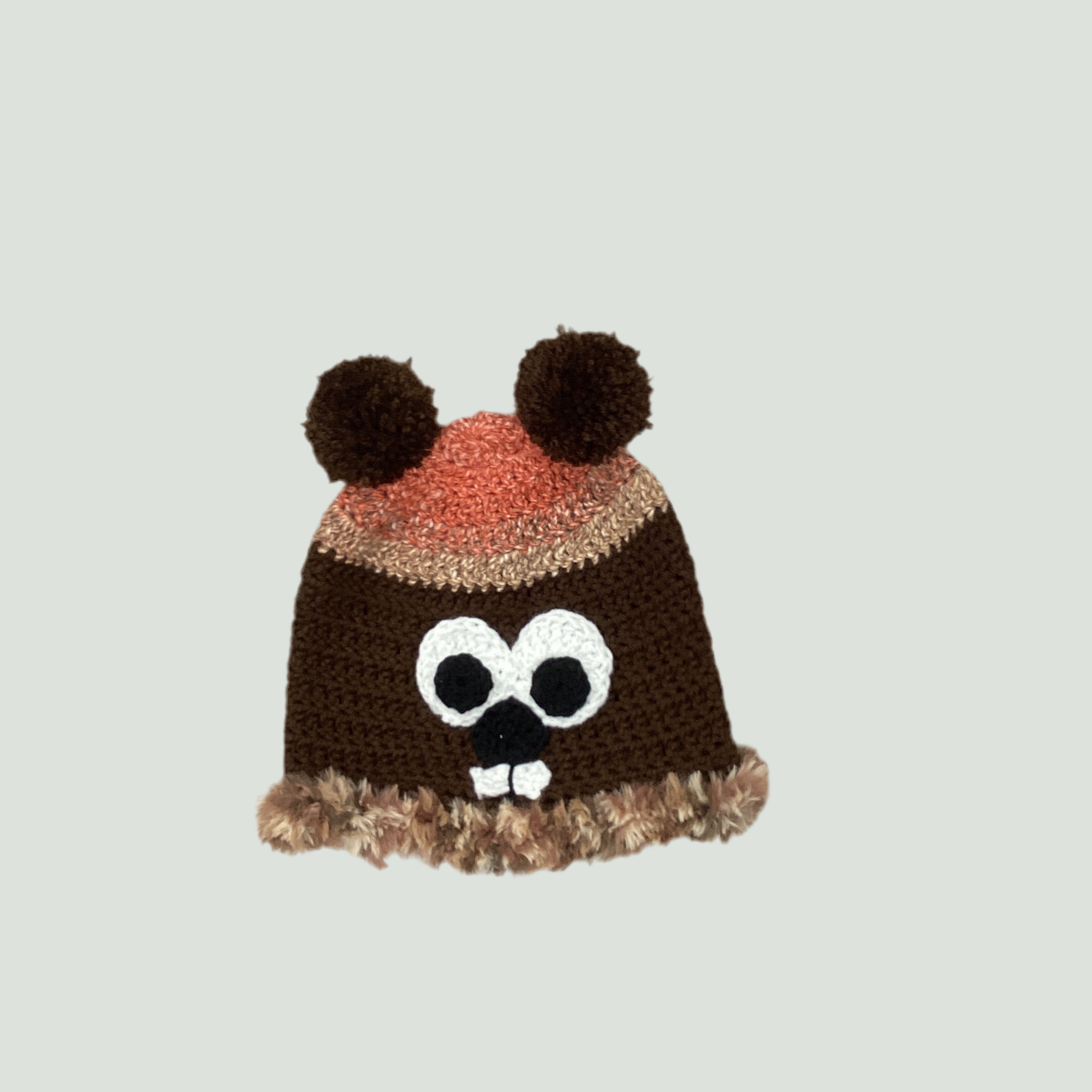 *Infant Handknit Groundhog Hat #1 - Dark Brown