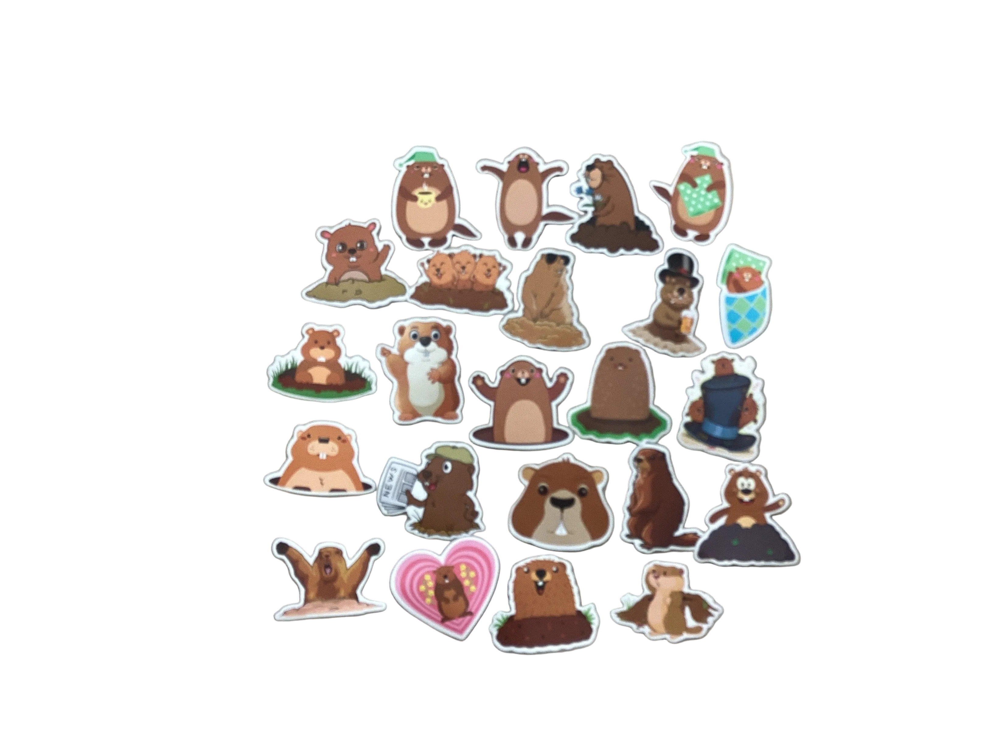 11/2 - 2 inch single groundhog stickers, assorted. Sku#000342