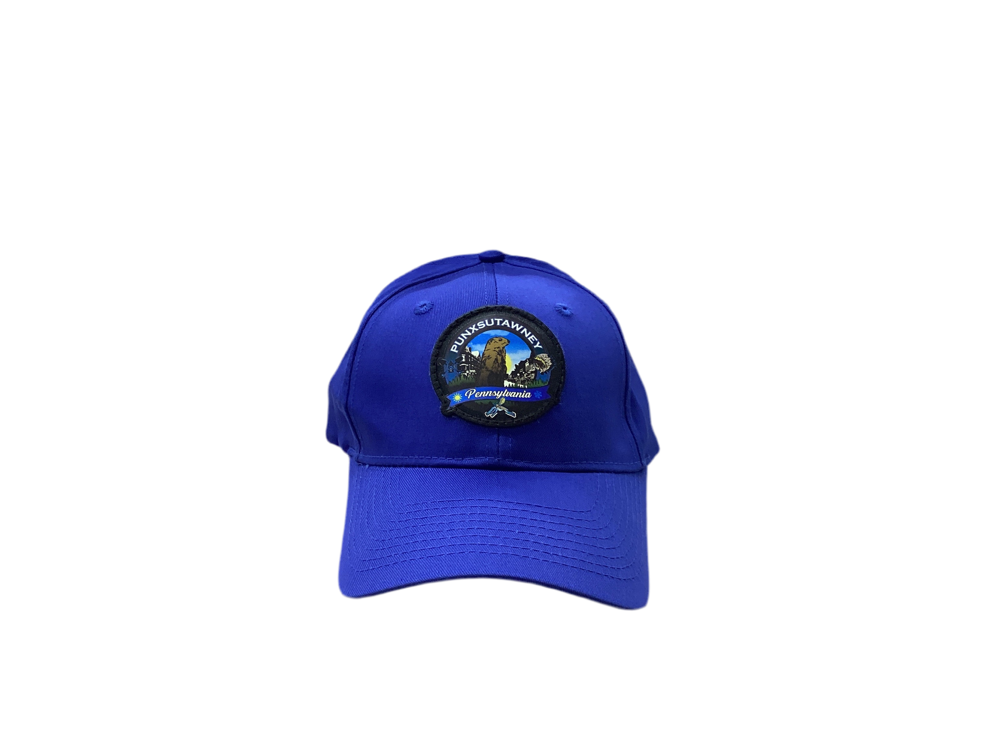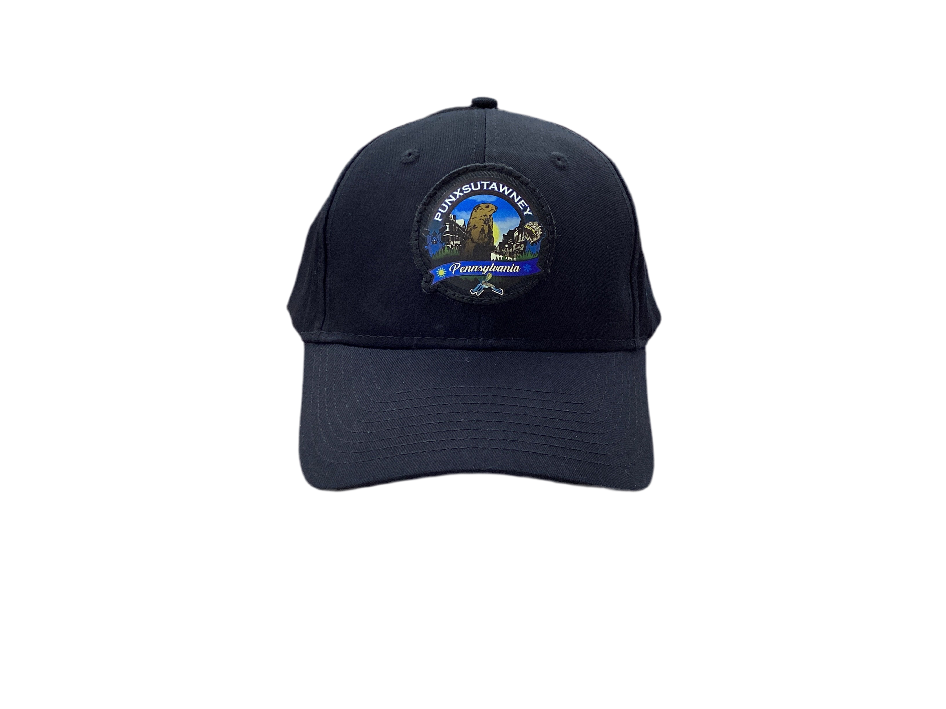 Punxsutawney,Pa , Groundhog , Indian and Home of the Sandflies full color hat. The artwork displays for full meaning of Punxsutawney,PA.