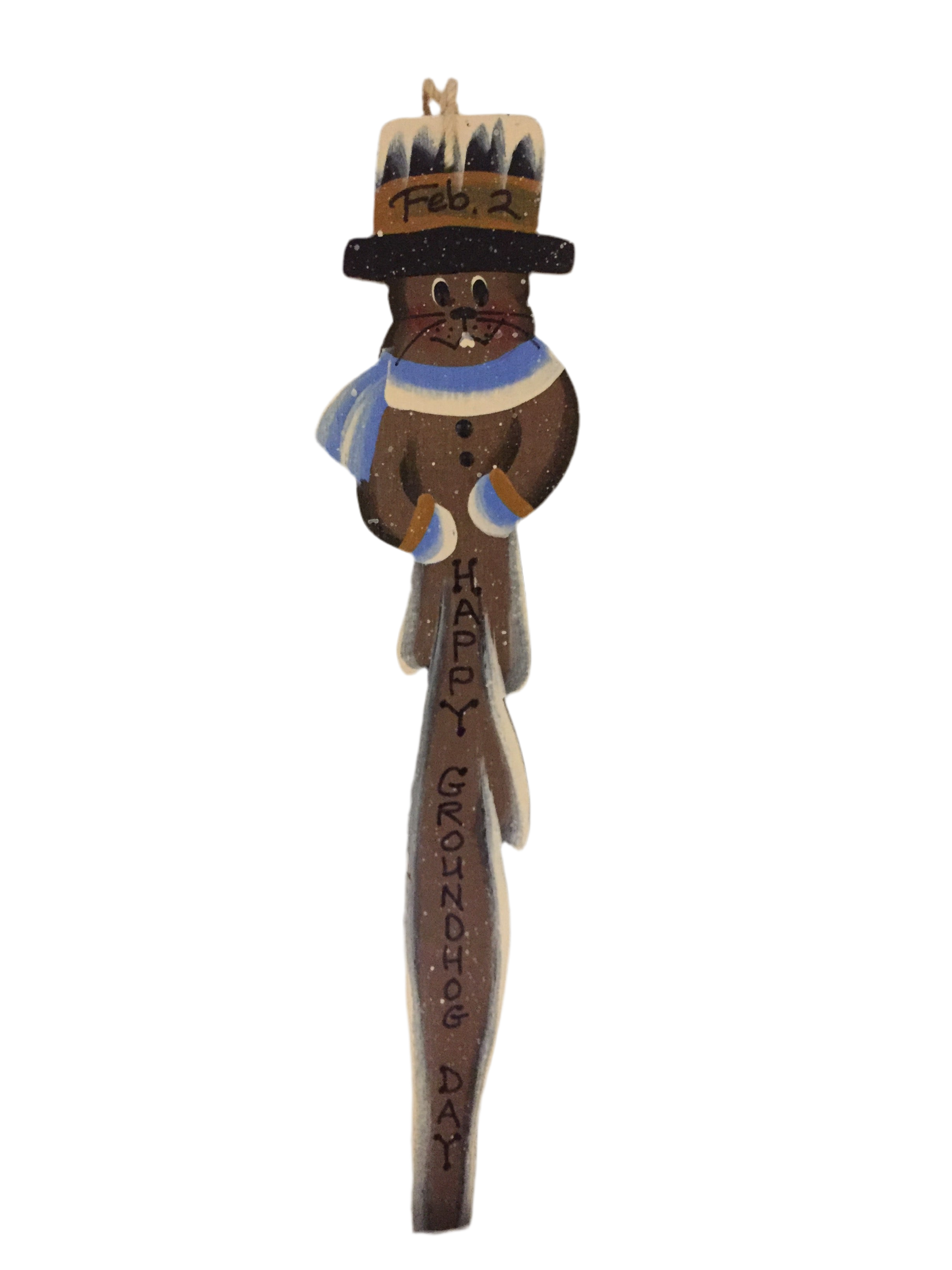 Hand cut and painted Phil groundhog icicle ornament. Made by one of our local artisans.