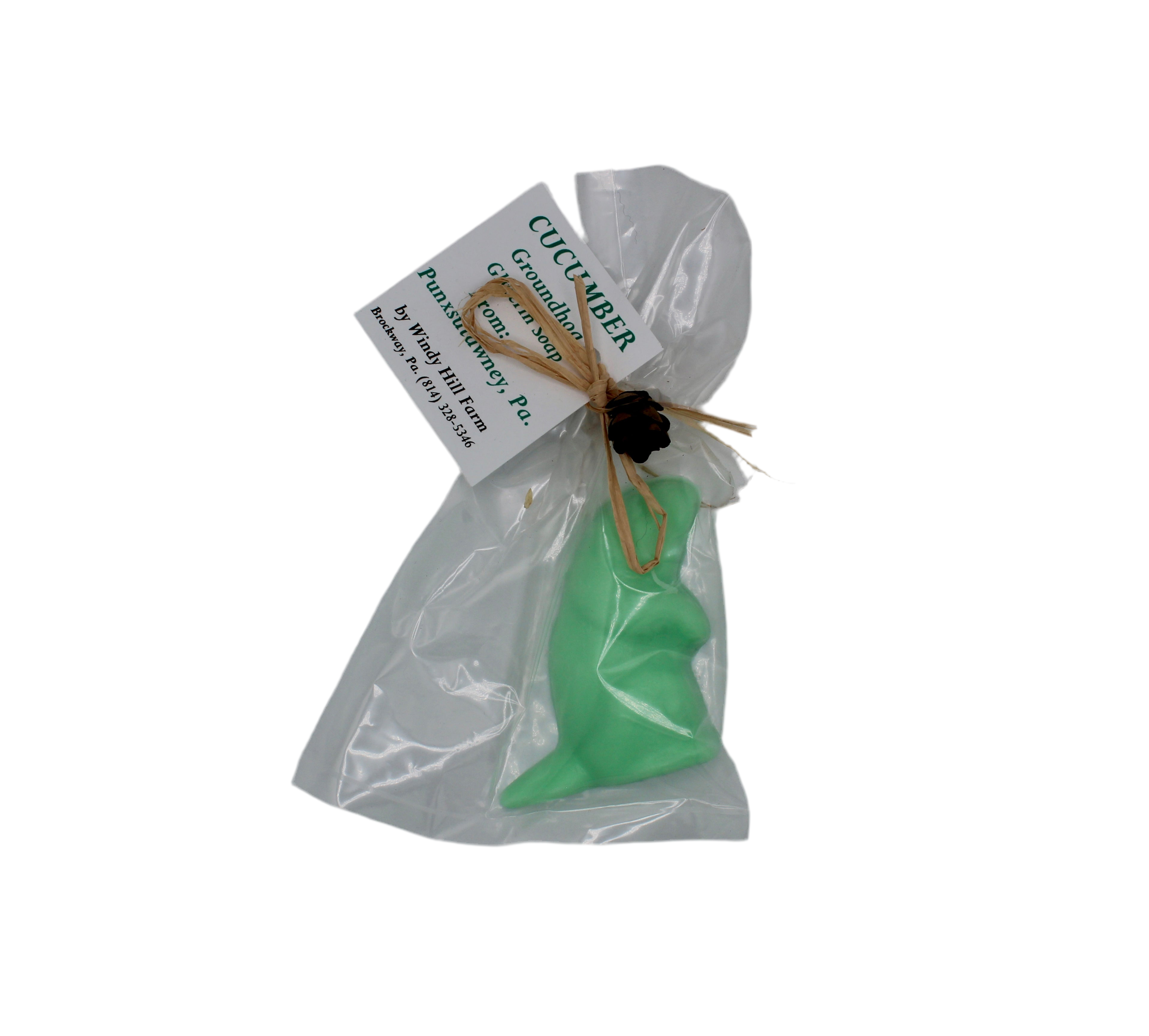 Individually-wrapped, cucumber melon-scented soap shaped like a groundhog. Great for Groundhog Day gifts, party favors, or just a fun treat!