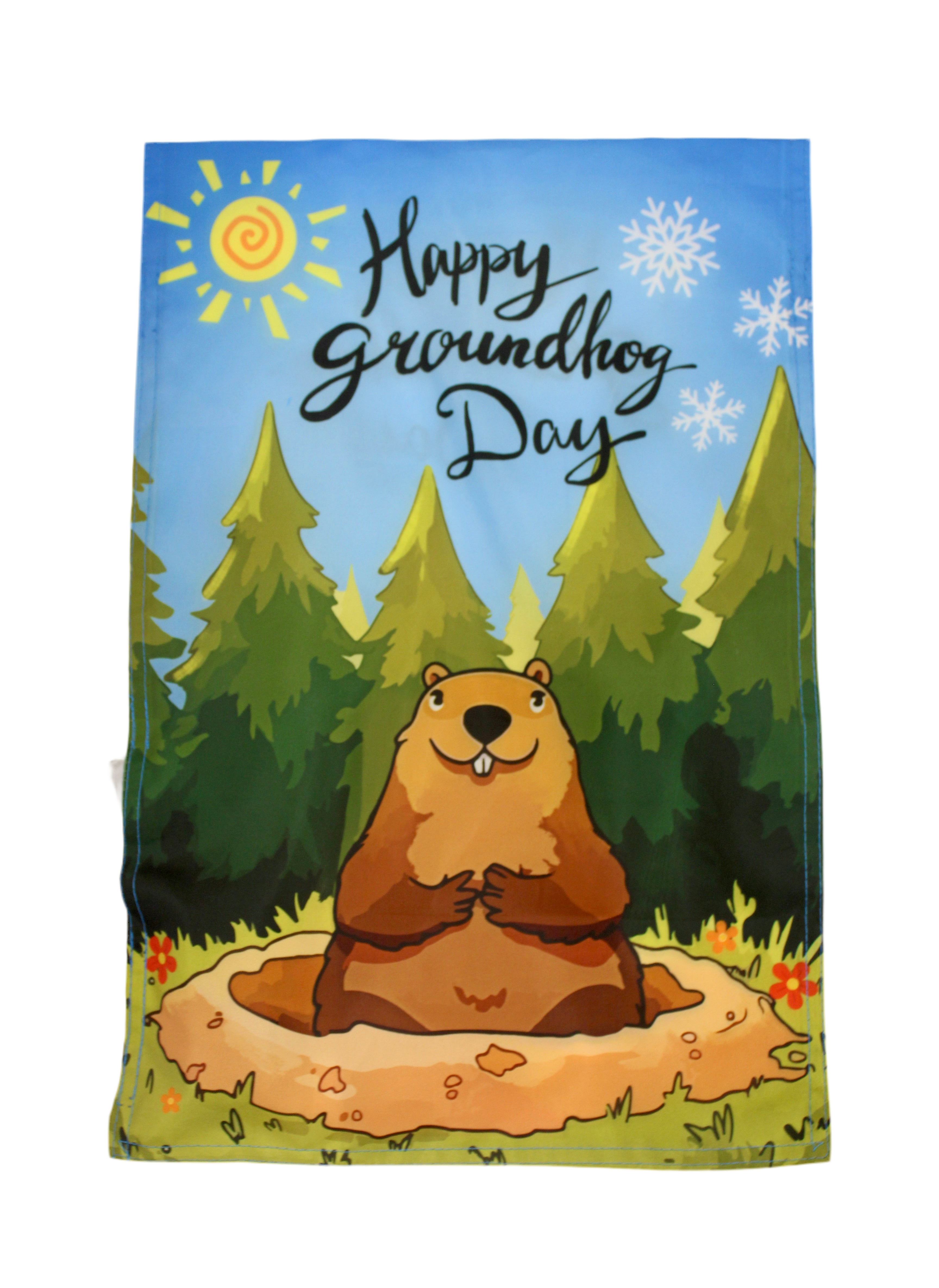 Celebrate Groundhog Day in glowing style with this 12x18.5" screen-printed garden flag. It lights up using a battery pack with a timer—perfect for outdoor decor that shines day and night!