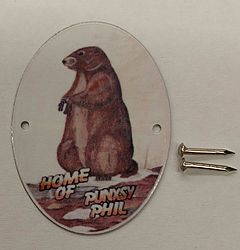 A 1.5 inch by 1 inch walking stick medallion of Punxsy Phil Sku#2799