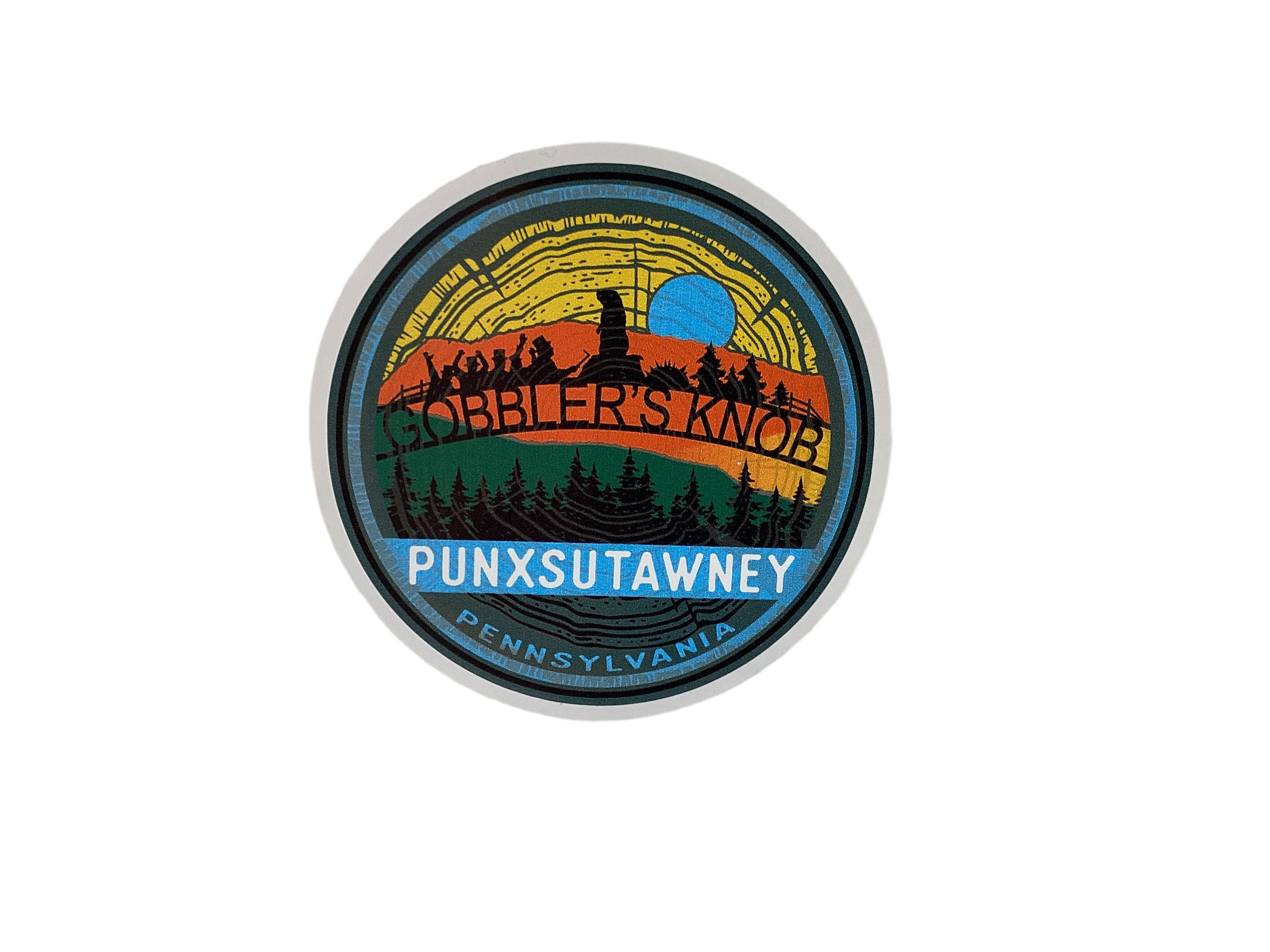 Gobbler's Knob (where Groundhog Day is celebrated every Feb 2nd) 4 inch full color decal. Sku#2753