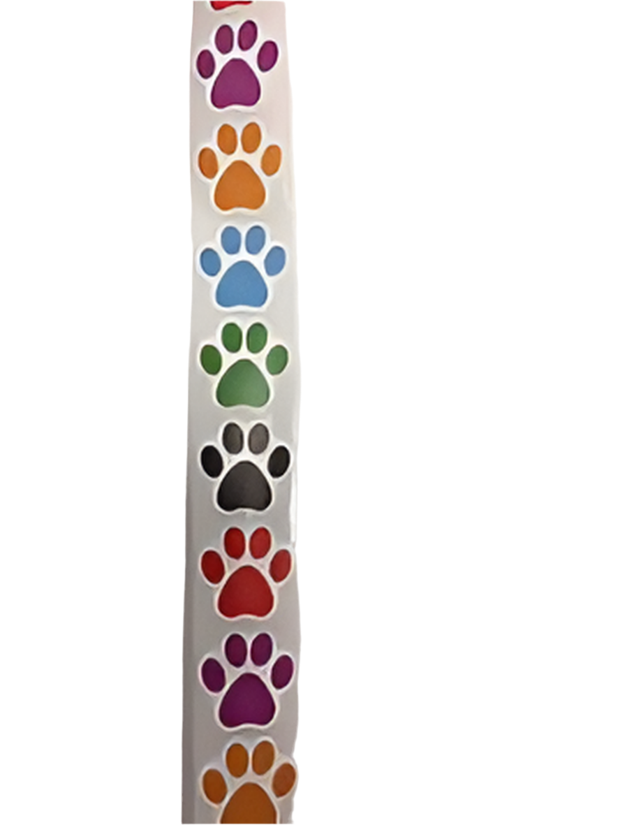 1x1 inch colored paw print stickers.. 5 cents each.. sku#2844