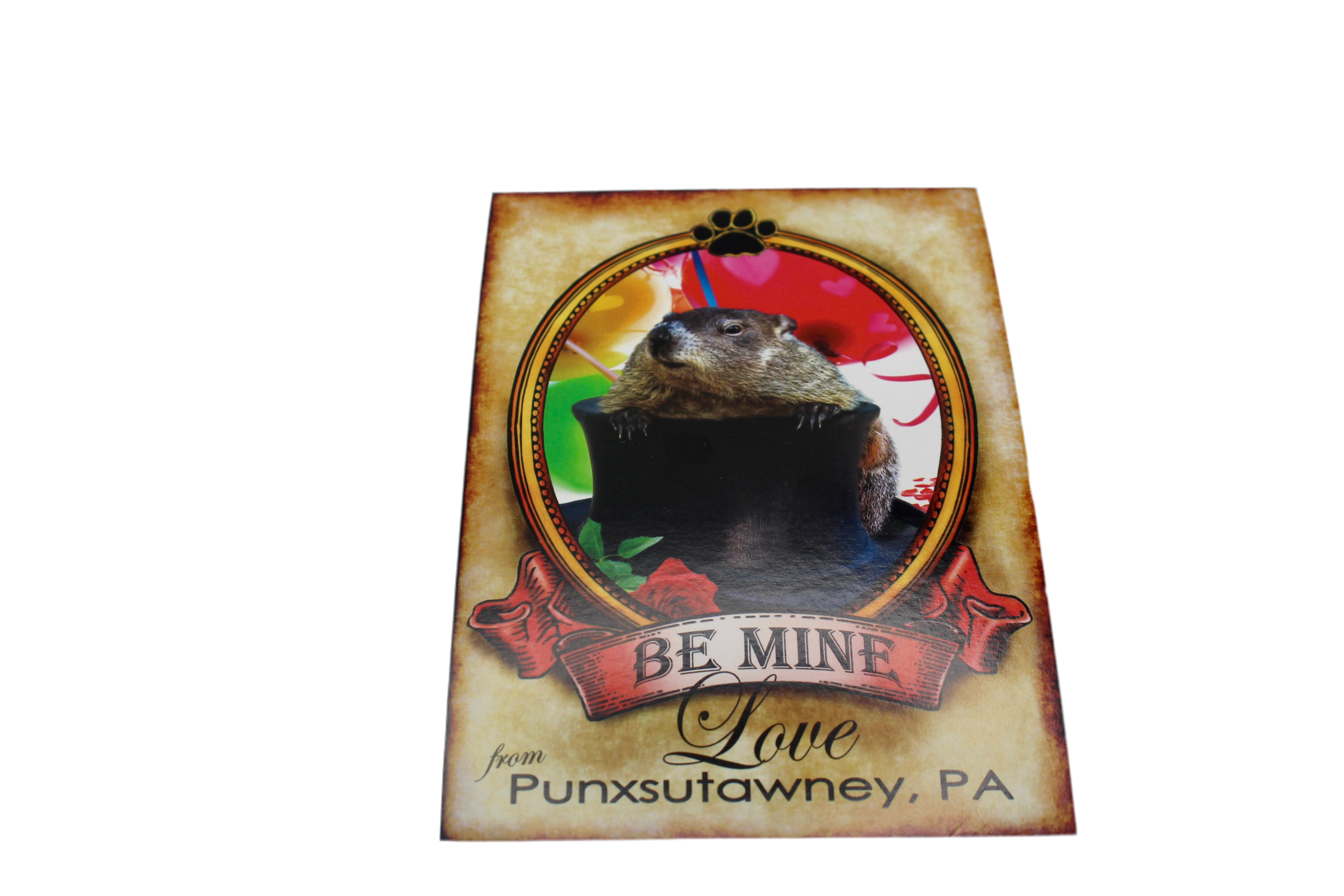 Send a little love with this framed Valentine's Day postcard featuring Punxsutawney Phil. A charming keepsake or sweet surprise for Groundhog Day fans.
