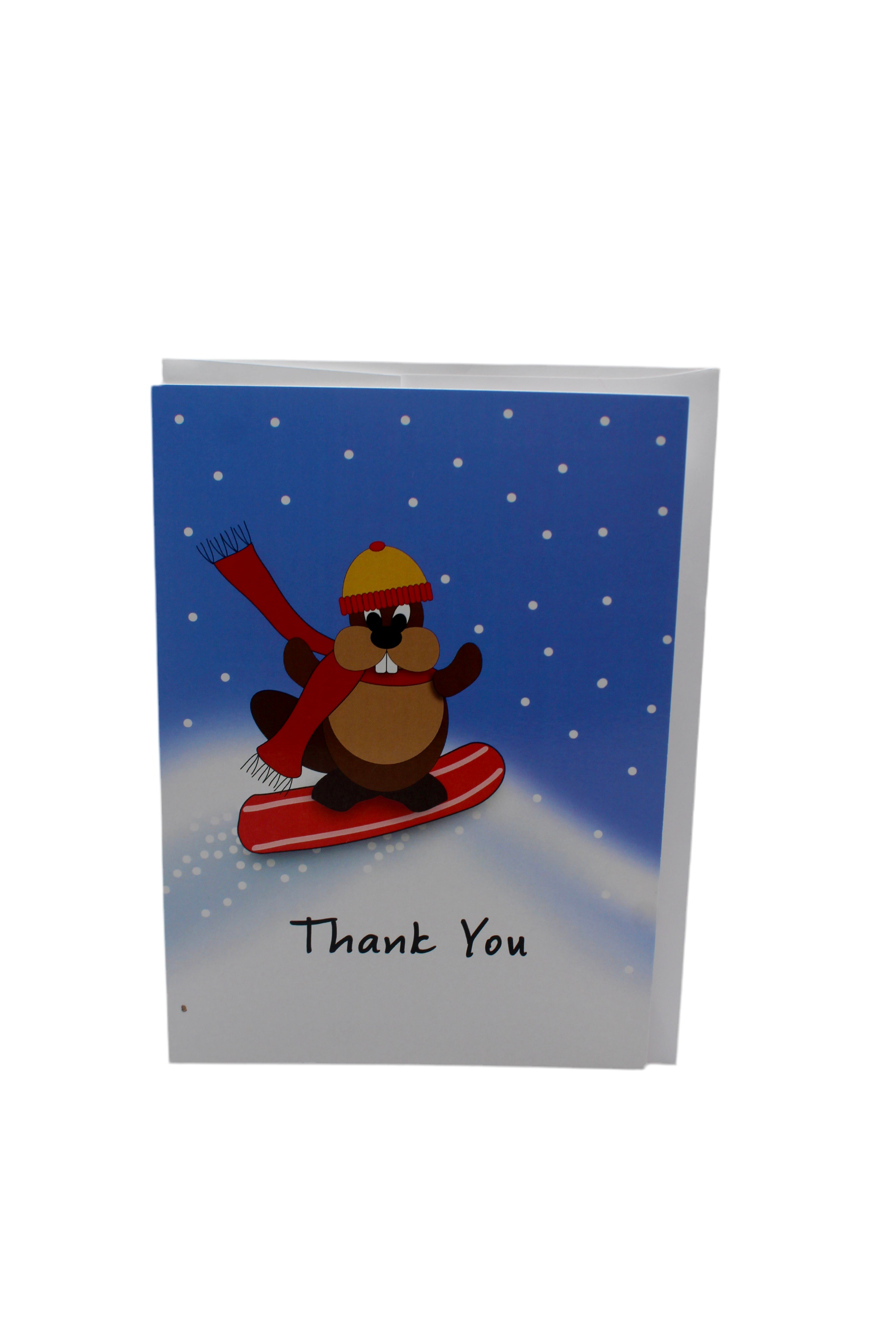 This glossy Groundhog-themed Thank You card is blank inside, making it perfect for any heartfelt message. Great for Groundhog Day or any occasion you want to show appreciation with a Punxsutawney Phil twist. SKU#2315.